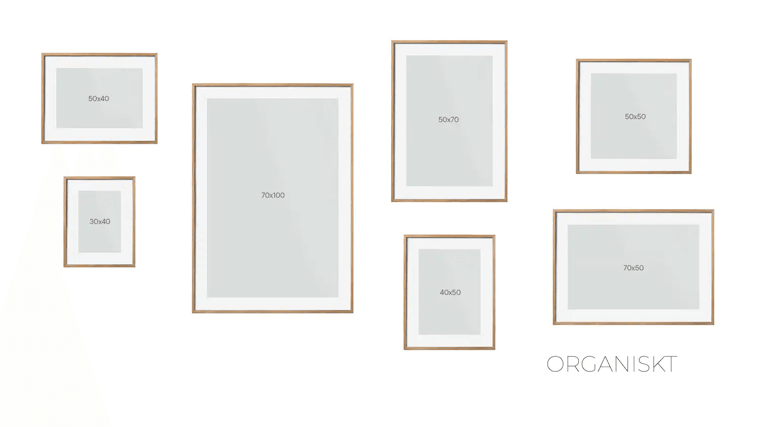 Vill du istället ha ett organiskt uttryck kan du placera tavlorna utan någon linje att följa. Det gör att väggen känns mer levande. Viktigt att tänka på här är att mellanrummet mellan vardera tavla är någonstans mellan en till två decimeter i bredd.